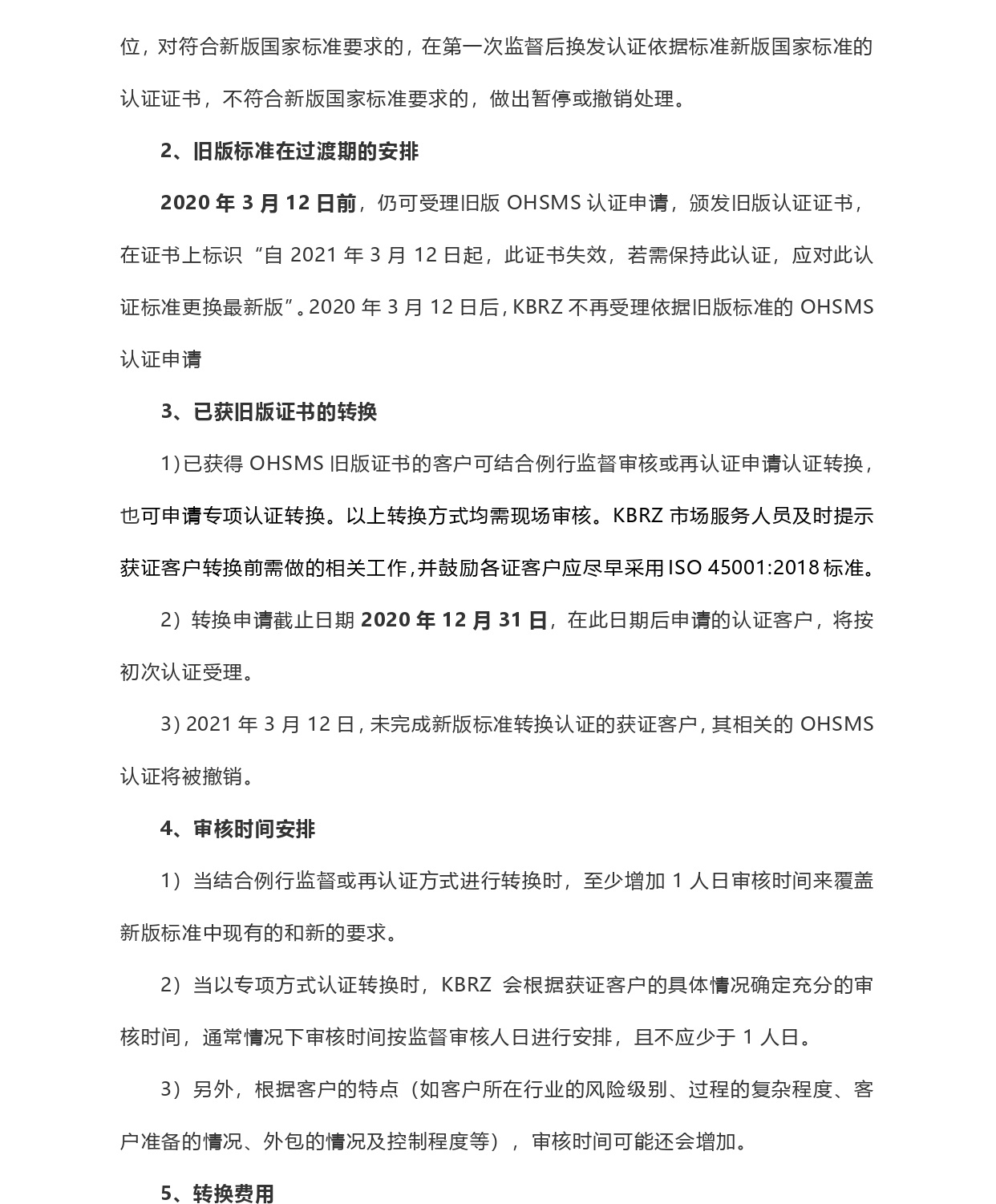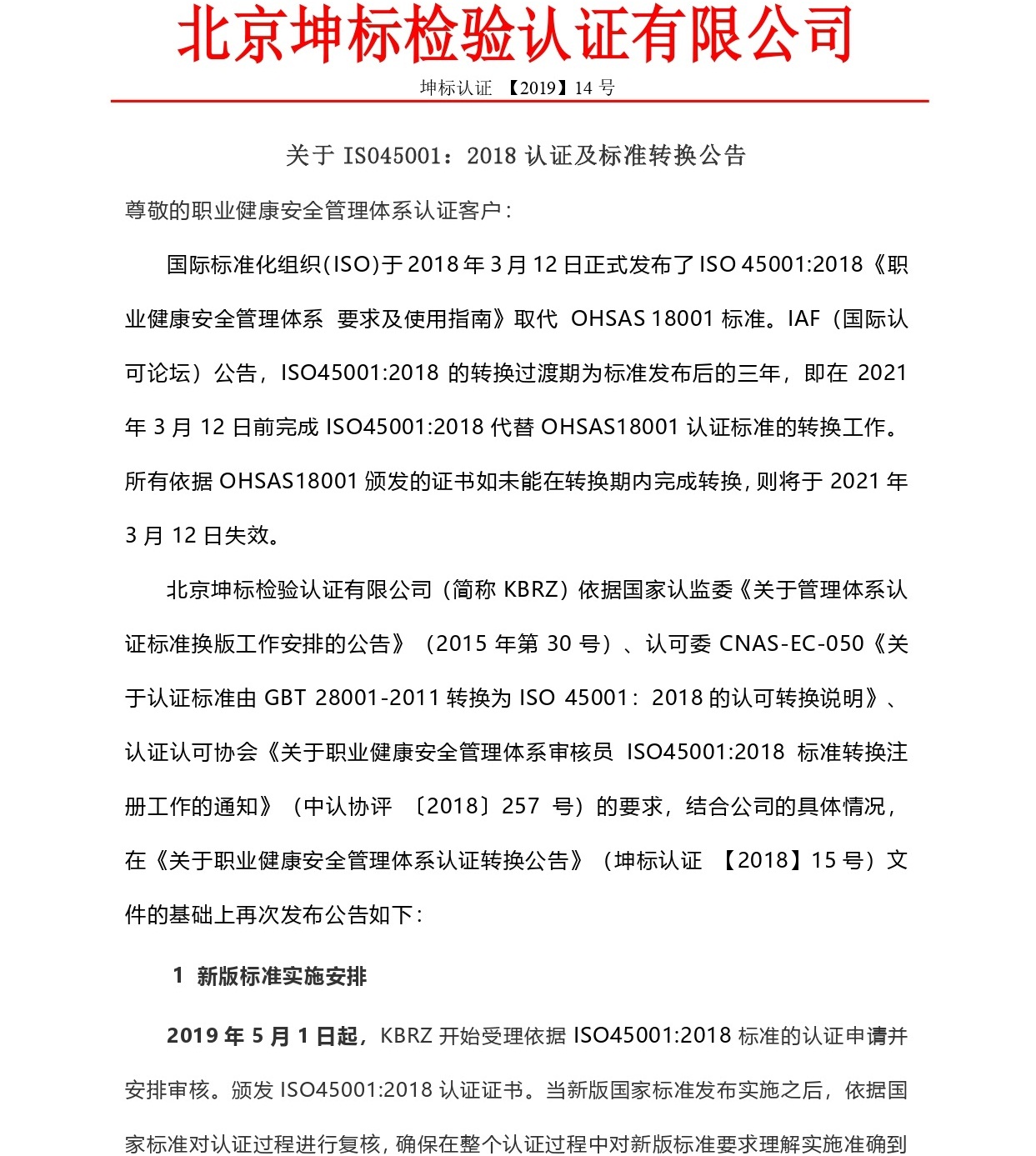 關于職業健康安全管理體系認證轉換公告