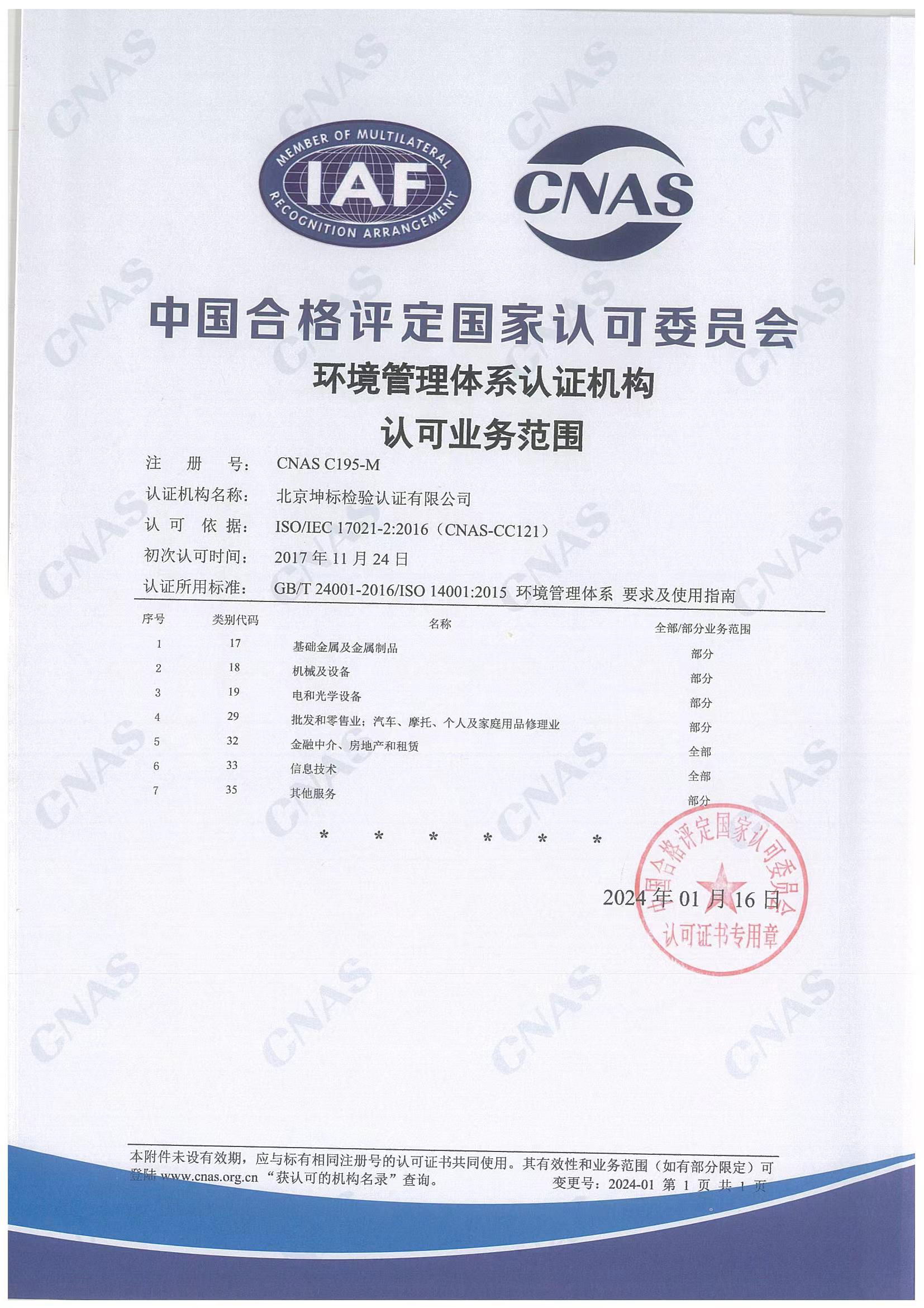 | QMS認可業務范圍(明細) | EMS認可業務范圍(明細) |